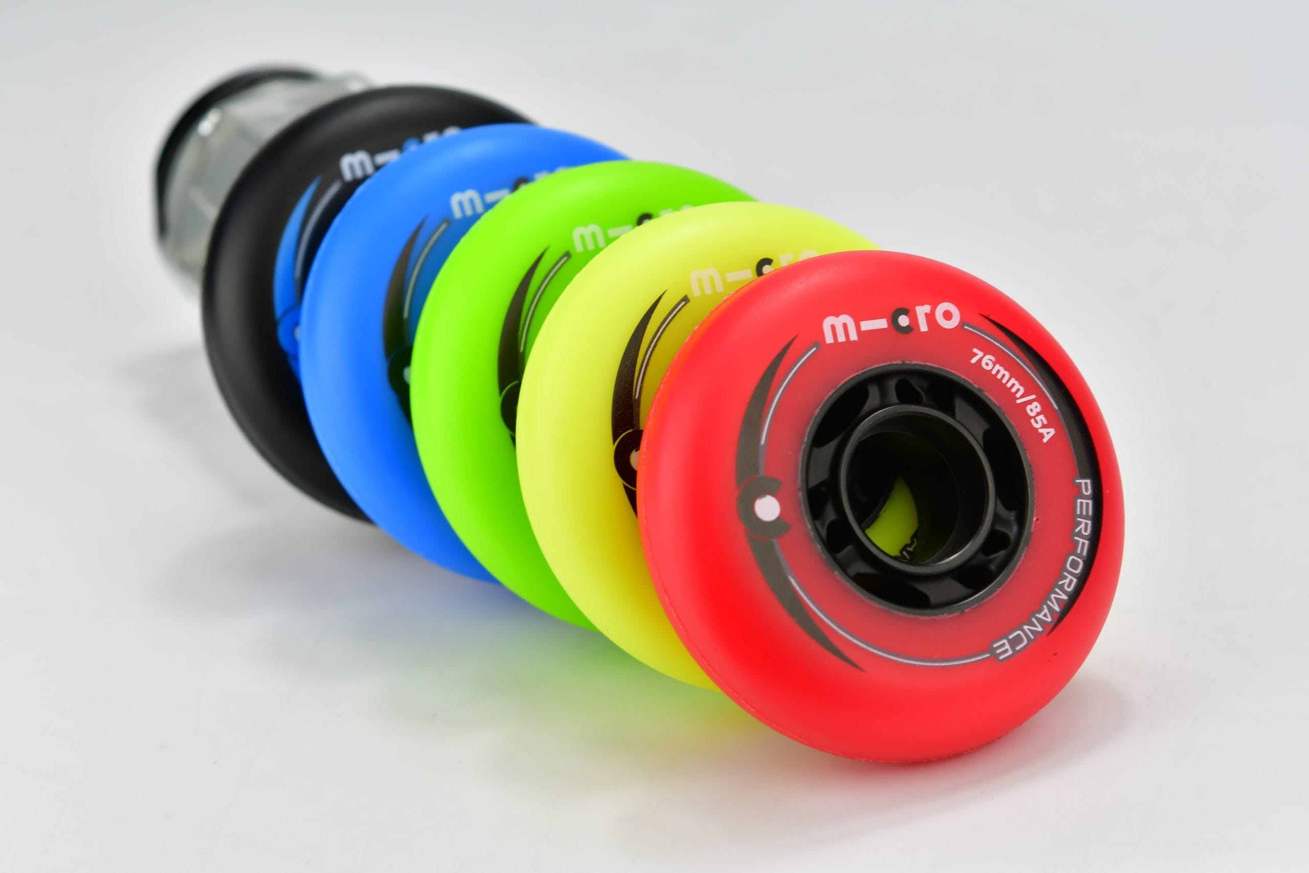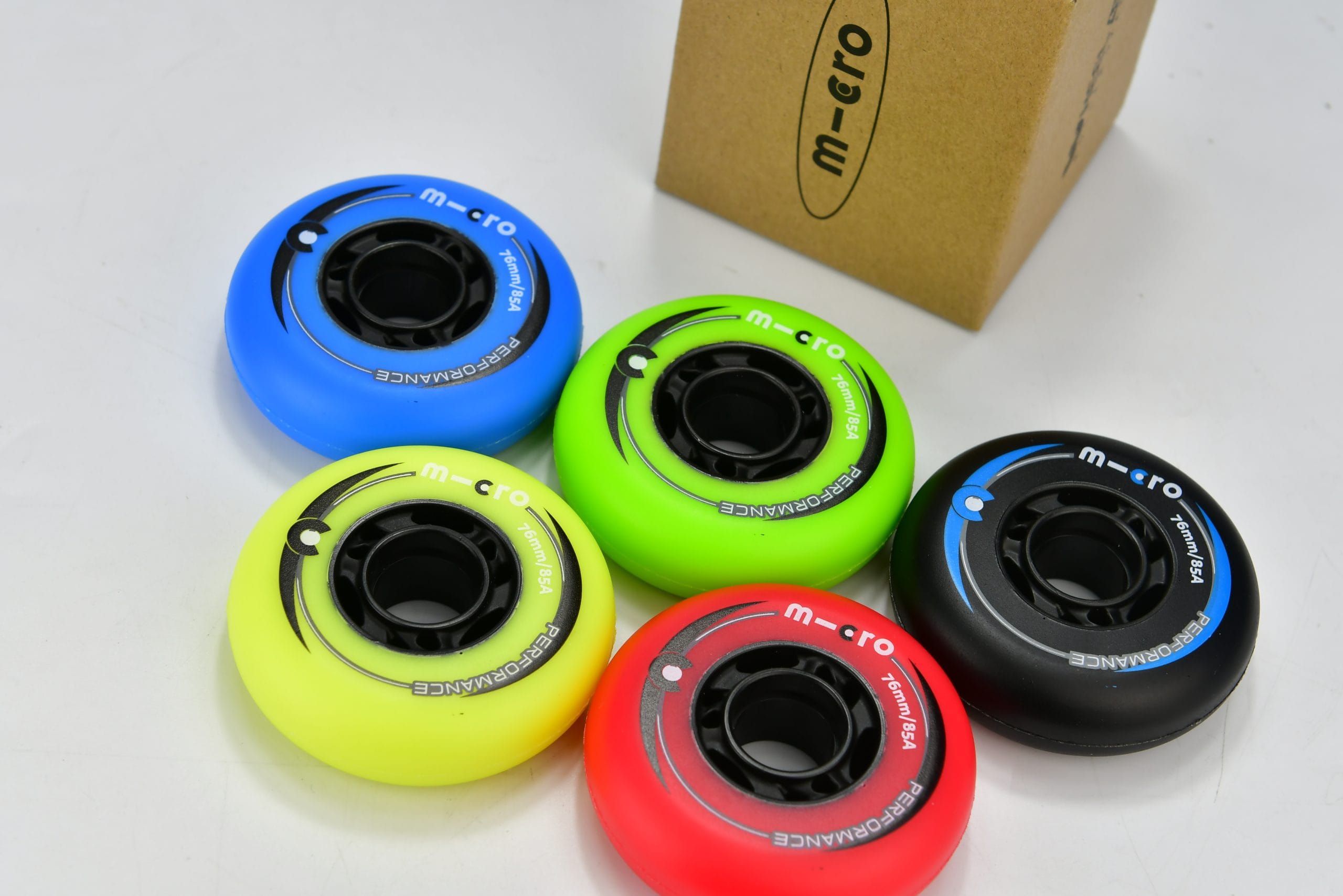 Wheels hardness is 85A. These wheels are Available in some amazing Colors like (Red,Yellow,Green,Blue,Black) and they come in two Different Sizes 76mm and 80mm .