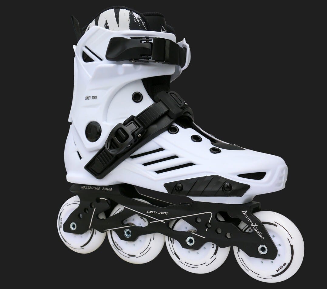 Stanley Hard Boot Inline Skate for Freestyle Slalom is Perfect Choice for skaters Looking for a Budget Friendly Solid plastic Body Skate which is More Stable provide Good Hold while Doing Freestyle slalom skating tricks and different Stunts. Skate has Solid Aluminium Frame and PU Wheels with 85A hardness and ABEC 7 Bearings to provide a faster and Smooth Rolling Experience without upsetting your Budget.